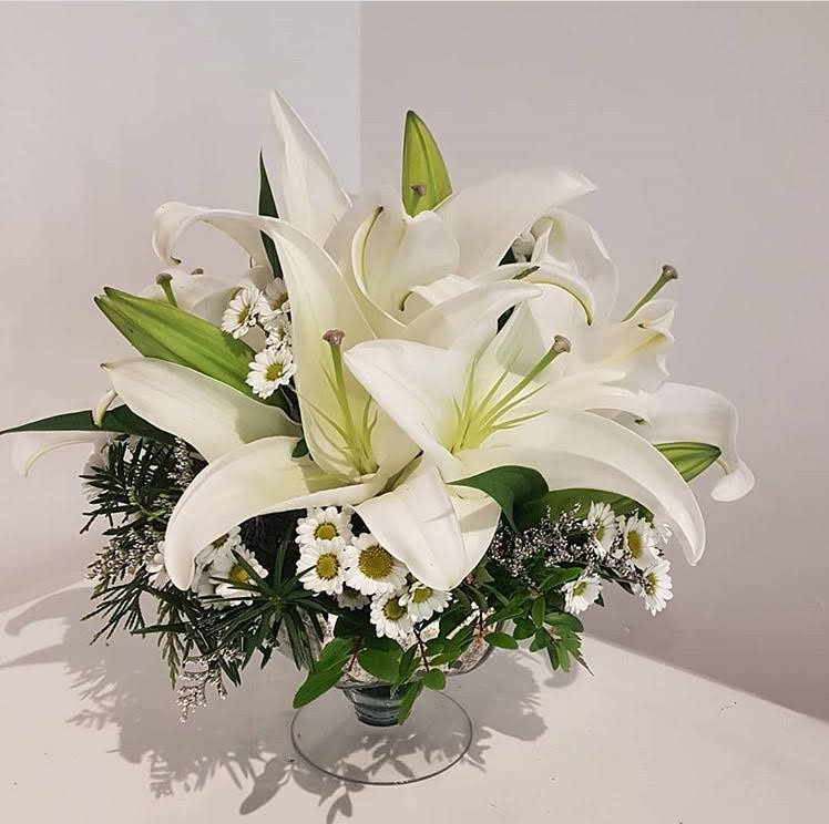 - The price noted includes the white glass vase. However, we can make this arrangement in different vases. Please call us to discuss the prices with different vases.